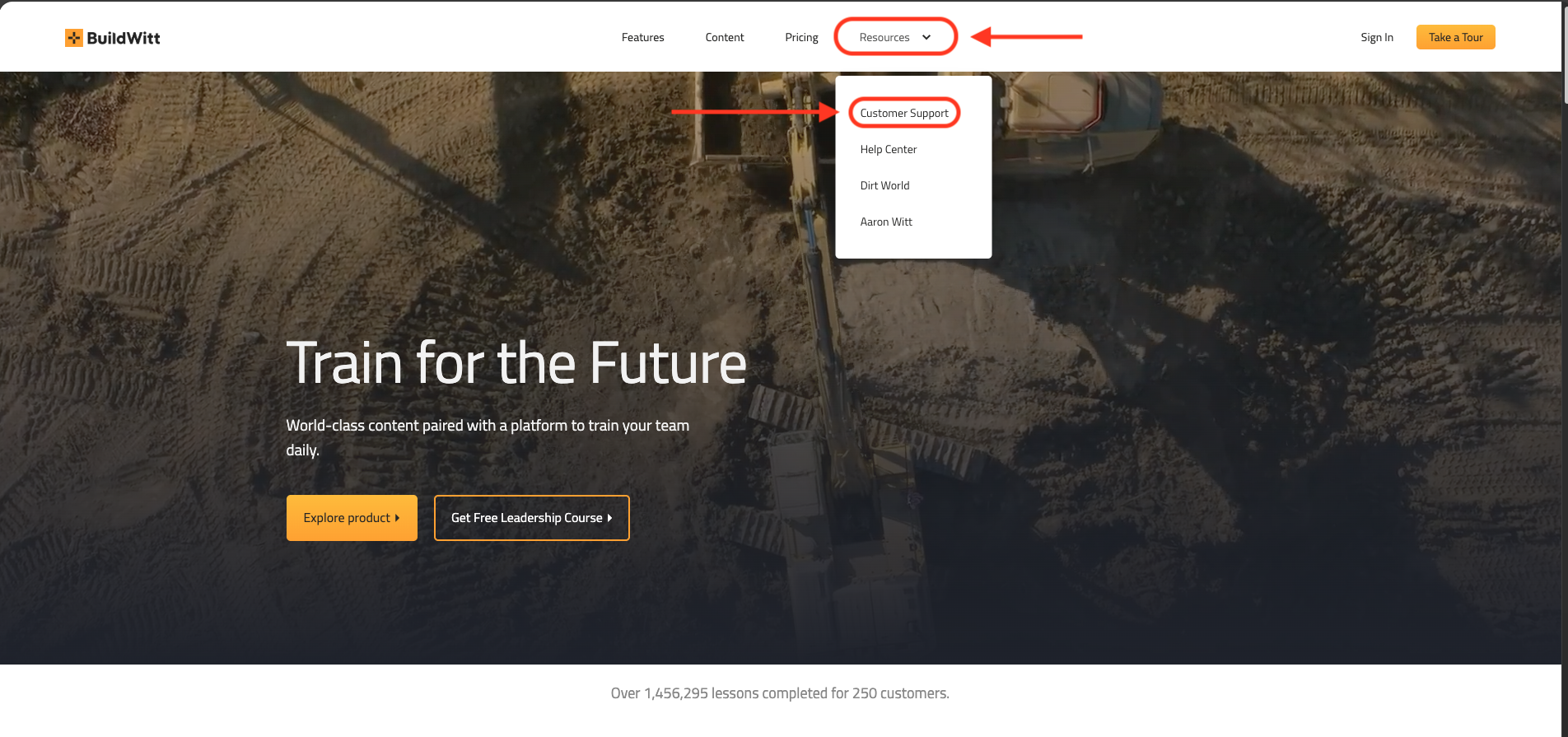 - While on the homepage hover over the "Resources" tab and select "Customer Support"